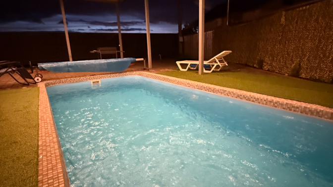 — открытый теплый бассейн с системой фильтрации (температура регулируется);