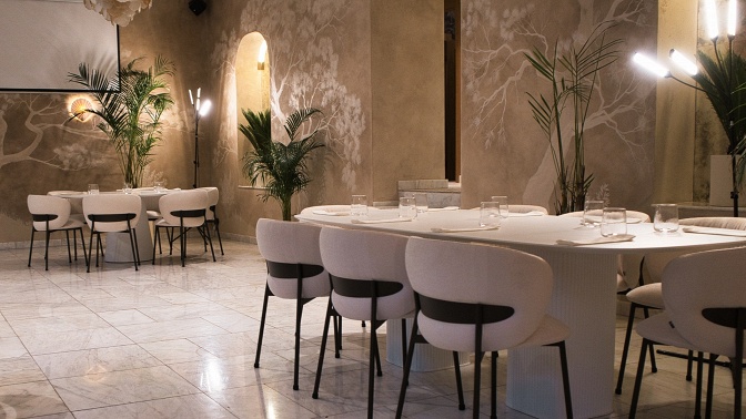 Ступая внутрь, вы попадаете в атмосферу современного уюта, созданного на стыке стильного дизайна и тонких этнических акцентов. Интерьер наполнен теплом природных материалов, мягким освещением и спокойной цветовой палитрой — идеальное место как для неспешного ужина вдвоем, так и для деловой беседы.